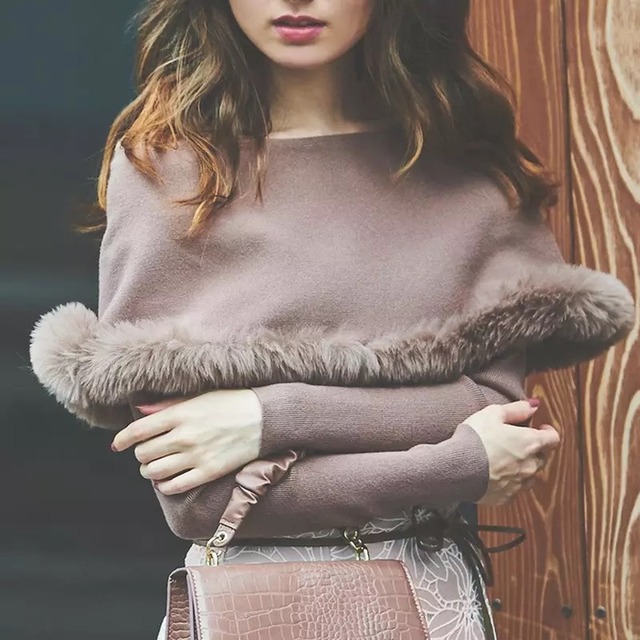 ケープ風 スクエアネック リブニットトップス