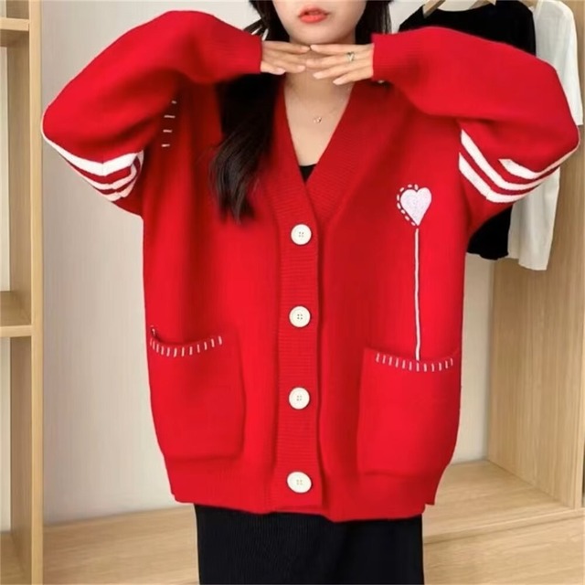 ◾︎サイズ F(Mサイズ相当) 【商品名】3色展開 ハートモチーフ ニットカーディガン 【素材】アクリル この3色展開のハートモチーフニットカーディガンは、春先から冬まで大活躍するキュートなアイテムです。韓国風のデザインが際立つこちらのカーディガンは、ゆったりとしたサイズ感でリラックスした着心地を実現。ハートのアクセントが可愛らしさを引き立て、どんなスタイルにもワンポイントの魅力をプラスします。 カーディガンはパンツと合わせてカジュアルなコーディネートにも、スカートで合わせるとフェミニンな印象を演出します。多彩なスタイリングが可能なので、日常のカジュアルシーンからおしゃれな外出まで幅広くご利用いただけます。 このカーディガンは、自分へのささやかな贈り物としても、大切な友達への心温まるギフトとしても喜ばれることでしょう。ぜひ、3色展開のハートモチーフニットカーディガンで、デイリーコーデにキュートなアクセントを加えてみてください。 ※商品画像と実物では、色味に若干の違いが生じる場合がございますので、予めご了承ください。