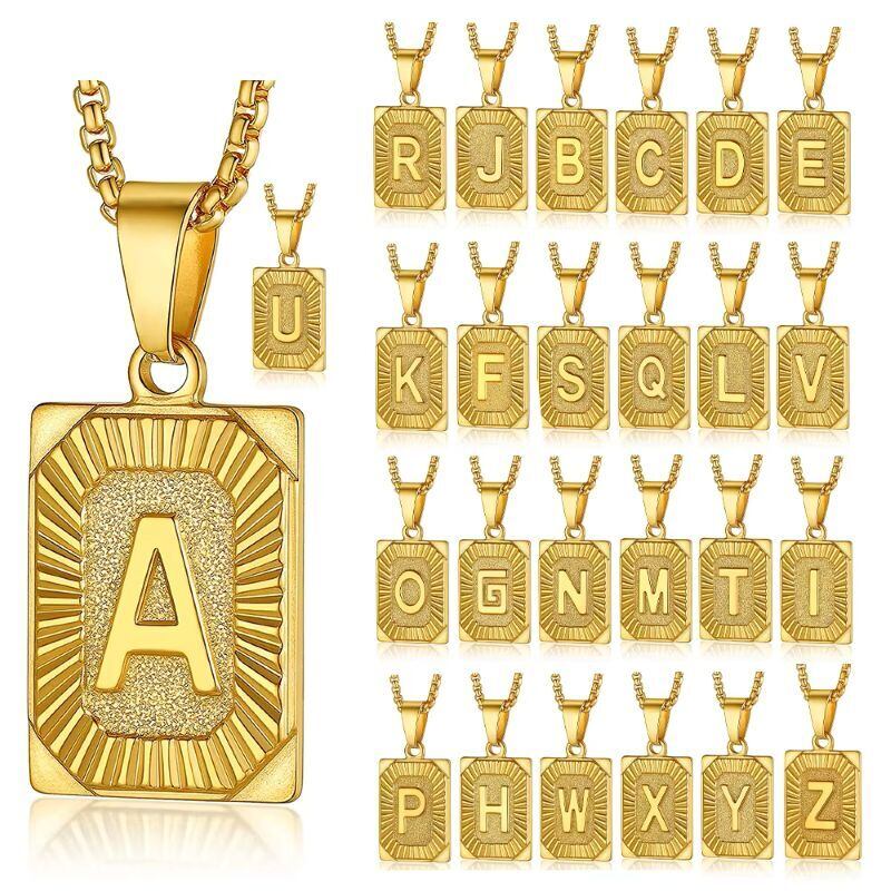 【商品名】Gold Initial necklace / アルファベット プレート イニシャル ネックレス ゴールド