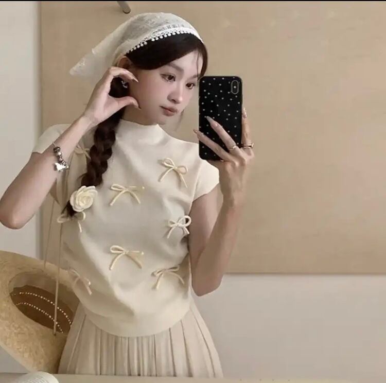 韓国で人気のブランドから届いた、かわいい半袖ニットリボンが新登場!華やかなリボンがアクセントになり、女性らしい雰囲気を演出してくれます。シンプルなデザインなので、様々なスタイリングに合わせやすく、コーディネートの幅も広がります。程よい肌触りで快適に着られるのも嬉しいポイント。